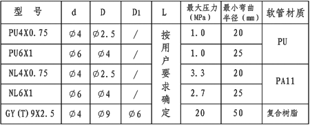 潤(rùn)滑系統(tǒng)用的油管可分硬管和軟管。硬管的材質(zhì)可為銅管、鋁管、不銹鋼管等。用戶聯(lián)接潤(rùn)滑系統(tǒng)時(shí)應(yīng)保證油管切口平整且為垂直軸心線的橫截面,油管內(nèi)壁應(yīng)清潔。軟管可根據(jù)潤(rùn)滑系統(tǒng)的工作壓力選擇PU**型管、NL**型管、GY**型高壓軟管及GYT**型彈簧護(hù)套高壓軟管等。 技術(shù)參數(shù)