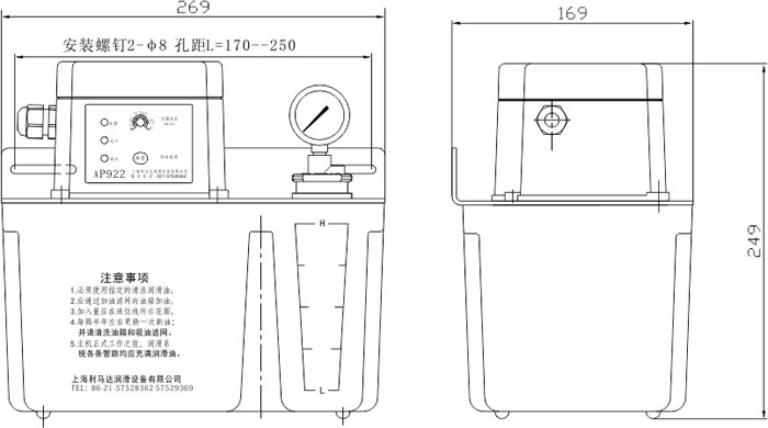 “AP922”系列自動(dòng)潤滑泵是一種電機(jī)驅(qū)動(dòng)齒輪泵。含“MY”型控制器、自動(dòng)卸荷閥、液位開關(guān)等。屬間歇工作泵。用于需周期工作的容積式定量集中潤滑系統(tǒng)。接通電源,即可自動(dòng)工作。具有液位報(bào)警、輸出聯(lián)控信號(hào)等功能。 工作電源:AC220V;50~60Hz 功率: 60W; 額定壓力:1.8MPa; 額定流量:200ml/min。 適用潤滑介質(zhì):N32#~N68#。 “AP922”系列自動(dòng)潤滑泵廣泛應(yīng)用于機(jī)床、紡機(jī)、印機(jī)、塑機(jī)、電梯、木工、食品、包裝等機(jī)械設(shè)備的潤滑。