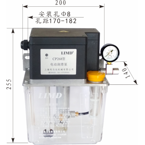 一、概述 “GP268”智能潤滑泵,內(nèi)含“SK6”型控制器、自動卸荷閥、自動排氣內(nèi)閥、溢流閥、低油位報警、壓力開關(guān)等,其中壓力開關(guān)使用壽命高達(dá)100萬次,屬間歇工作泵。用于需周期工作的容積式定量集中潤滑系統(tǒng)。泵油間歇時間設(shè)置范圍:1~999分鐘(倒計時),具有斷電記憶功能;每次泵油時間長短根據(jù)環(huán)境溫度變化、負(fù)載多少自動調(diào)整;油泵的運行時間和間歇時間均采用數(shù)碼管顯示。 工作電源:AC220v,50/60(Hz); 功率:60(w);額定壓力:2.5(MPa);額定流量:160(ml/mim); 油箱容量:4升;適用介質(zhì):N32#~N320#潤滑油。